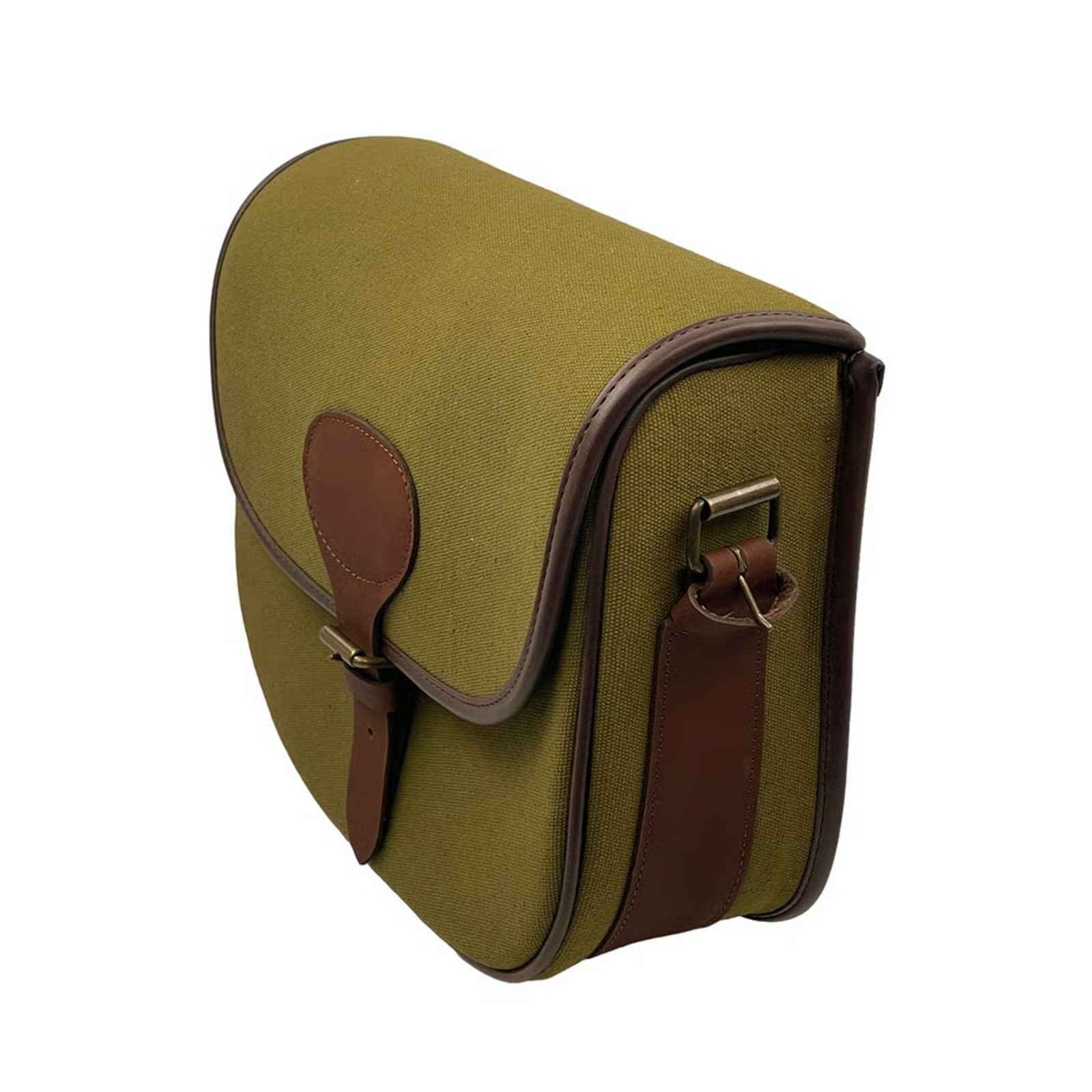 This cartridge bag brings together a lighter canvas body with defined leather accents, creating a practical field piece with a sharper, more contemporary profile. The body is constructed from tightly woven, weather-resistant canvas that delivers strength without unnecessary bulk. Smooth plain leather trims outline the structure, key contact points and adding contrast that elevates the overall design. A semi-rigid opening allows the bag to hold its shape while in use, ensuring cartridges can be retrieved or dropped in with ease.